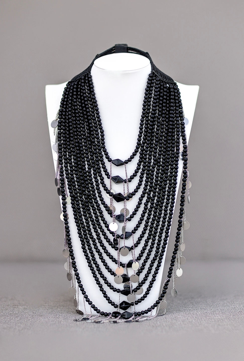 Necklaces made of cacholong and obsidian are the most popular among our customers all over the world.