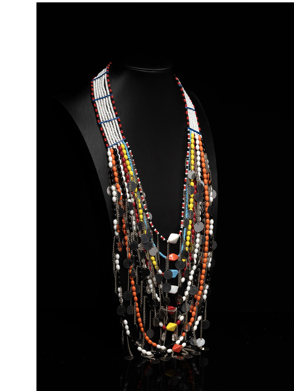 Components: Maasai coral, beads, metal pendans, natural leather (clasps)