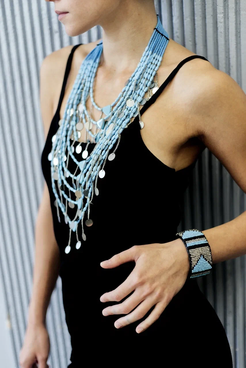 Light-blue coral necklace long