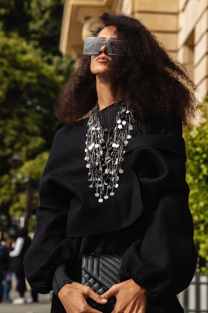 Components: Maasai obsidian, natural leather (clasps), beads, metal pendants.